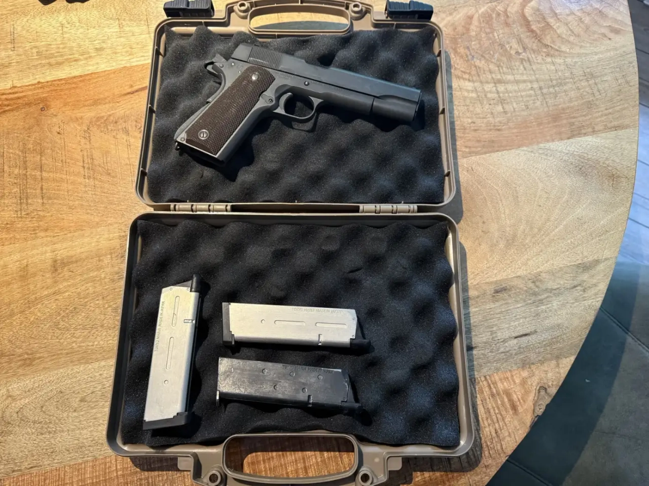 Je vends mon pistolet Tokyo Marui M1911A1 à gaz blowback, car je ne pratique plus l'airsoft. Qualité de fabrication légendaire TM, très précis et fiable. Fonctionne parfaitement et est livré avec des chargeurs supplémentaires et un étui rigide.