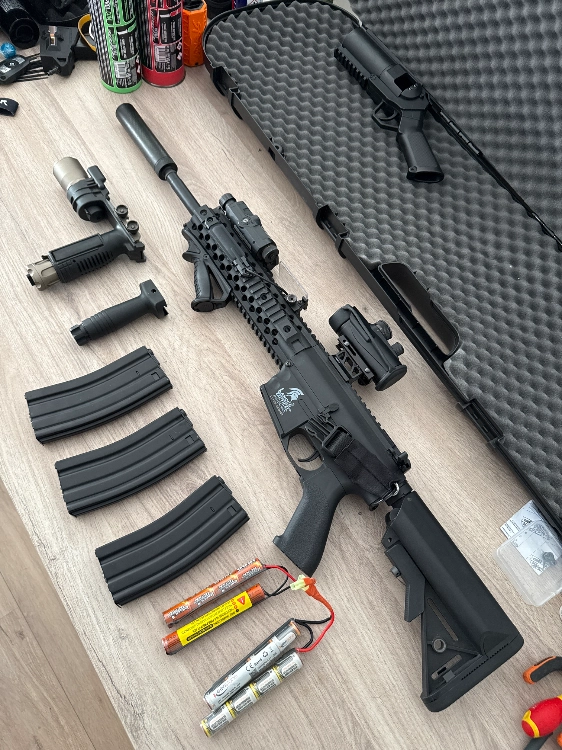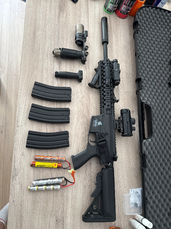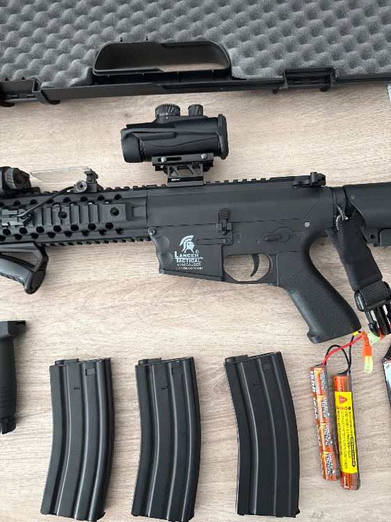 M4 lancer tactical avec deux batteries 3 chargeur 3 poignée avant 1 laser 1 viseur surélevé 1 sangle 1 silencieux