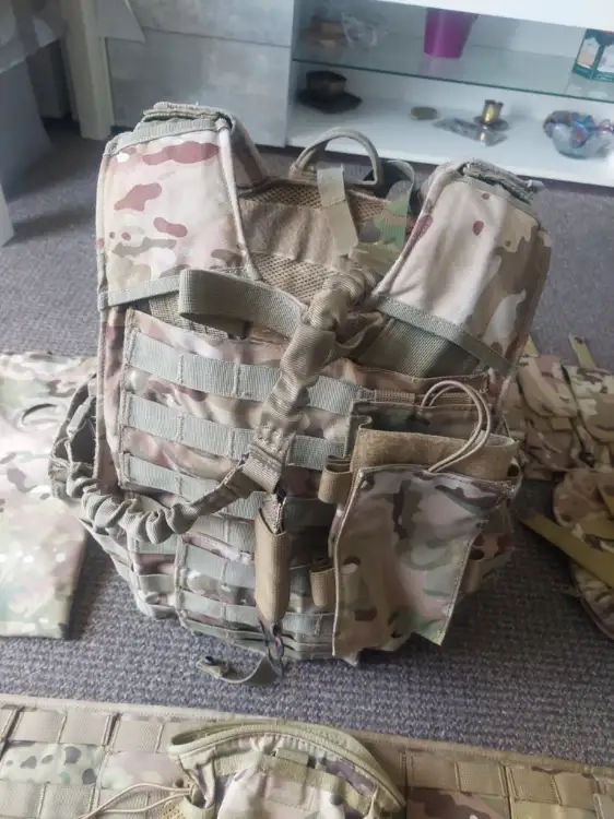 1 gilet tactique Porte plaque taille reglable j'usqu'au XL avec poche radio etat corect