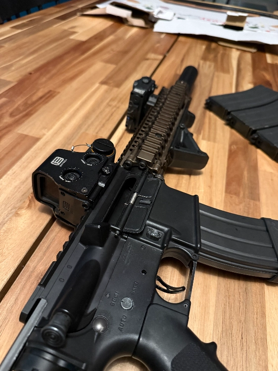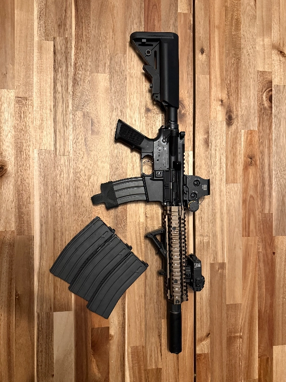 d’origine c’est une m4a1 cqbr passé en mk18, réplique tout juste sortie d’un gros entretien avé démontage trigger etc donc elle est clean 100%
