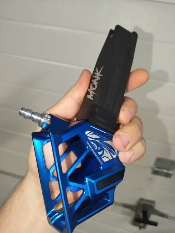 Adaptateur Monk HiCapa US Skeleton bleu , il est accompagné du chargeur ultra light de chez Monk.