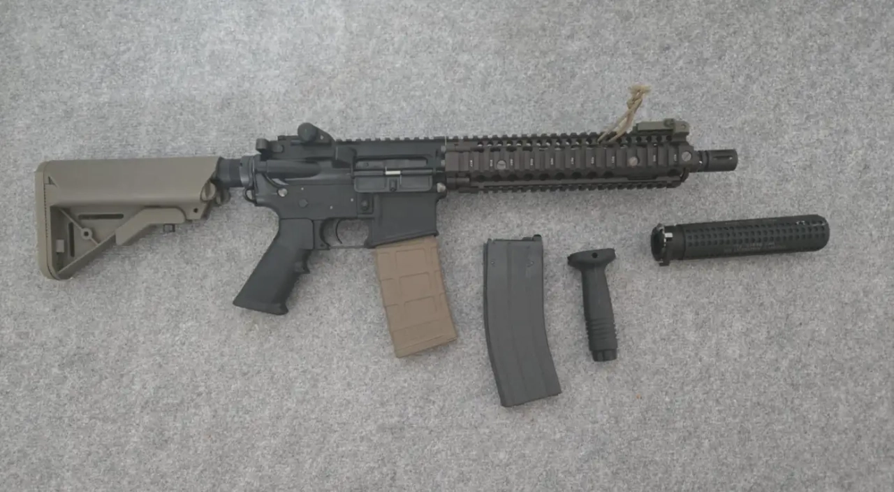 Je me sépare de mon mk18 MWS TM avec son mag d'origine + un silencieux KAC acetech avec tracer a l'intérieur et un grip KAC (c'est un vrai, pas une copie)