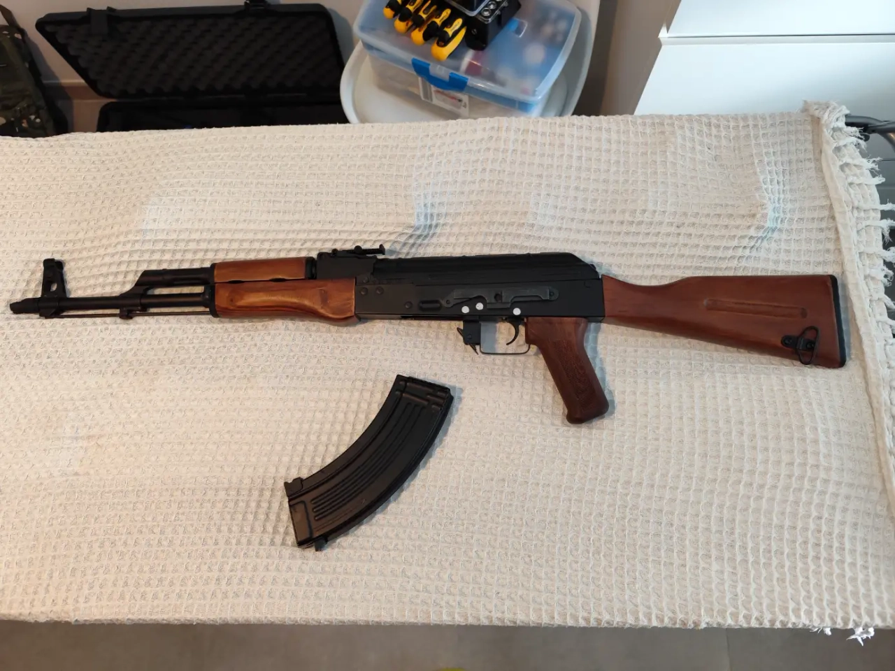 Vend réplique AKM Dboys AEG full métal et bois , servit une seule partie, entièrement d'origine et comme neuve, vendu avec boite d'origine et chargeur 130€.
