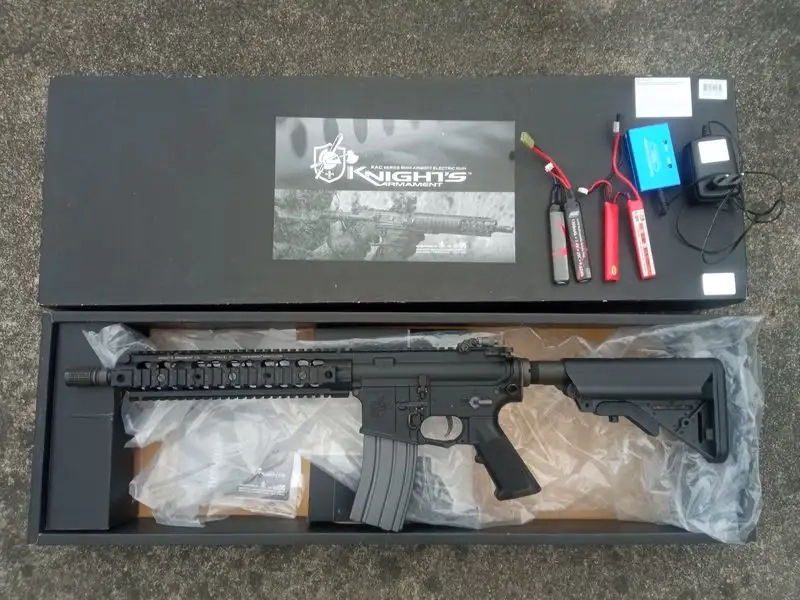La réplique sera fournie avec sa boîte, le chargeur hi-cap VFC d'origine, deux batteries Li-Po Sopmod en Mini-Tamiya (7,4v 1300 mAh) et un petit chargeur de batterie.