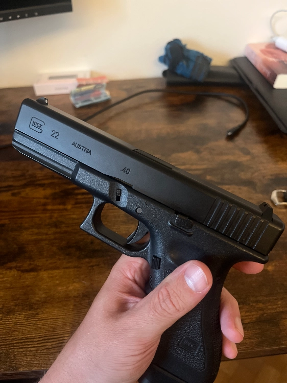 Je vends un pistolet airsoft Glock 22 Tokyo Marui, utilisé une seule partie et ayant tiré seulement 2 chargeurs.