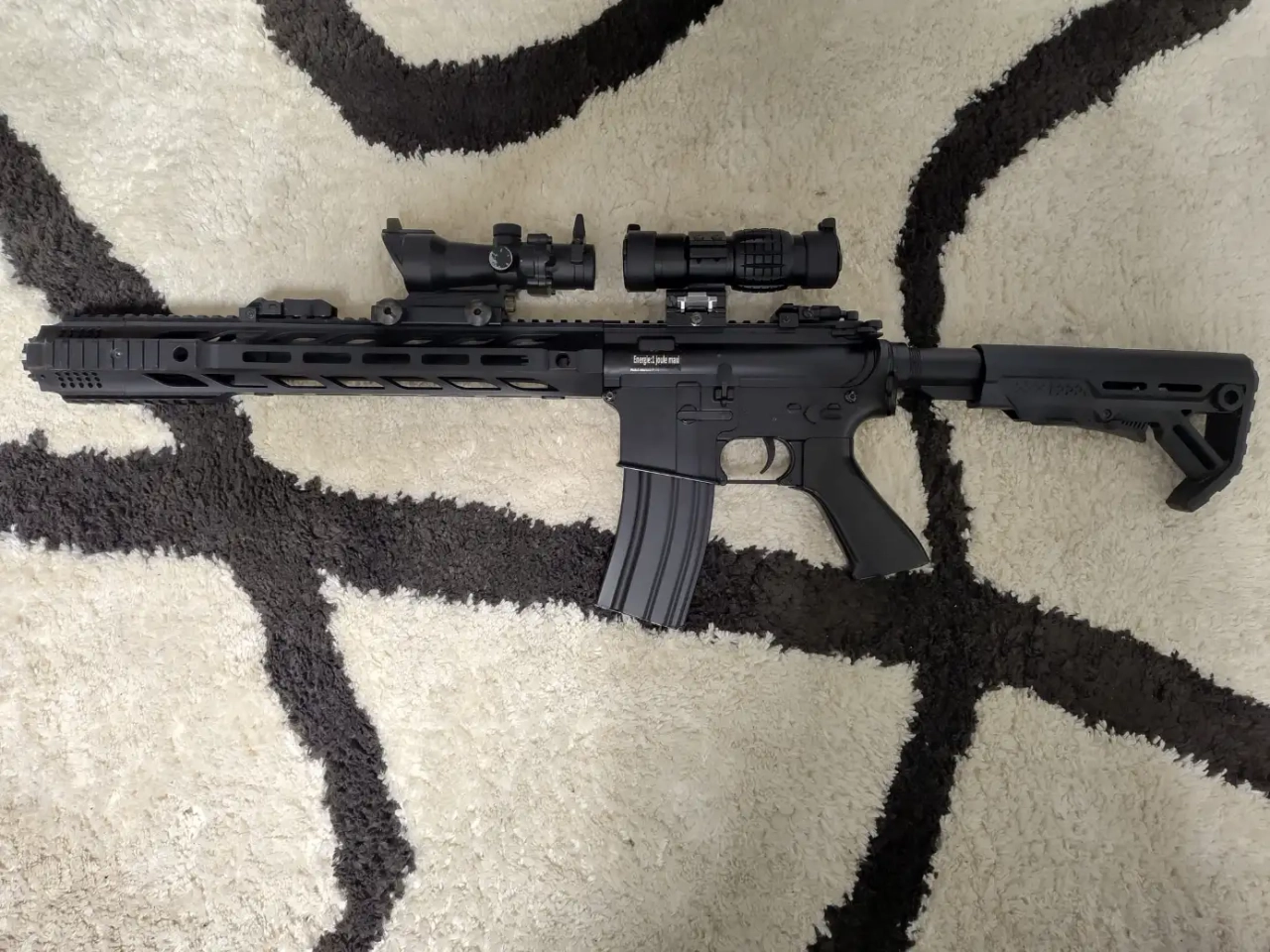 Une M4 cyma, presque neuve, l'interne est impeccable, et tourne comme une horloge. Le corps est en polymère, mais ça reste du cyma. Increvable ! N'hésitez pas à m'appeler pour plus de précision.