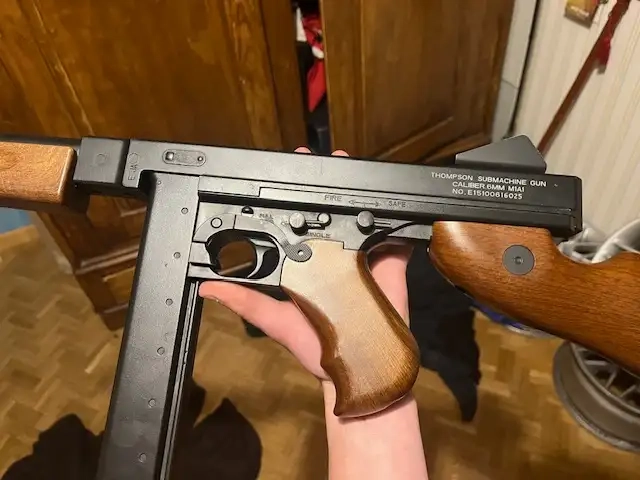 Bonjour, je vend ma réplique d'airsoft qui est une Thompson M1A1 électrique. Je la vend car je n'est plus le temps de l'utiliser.