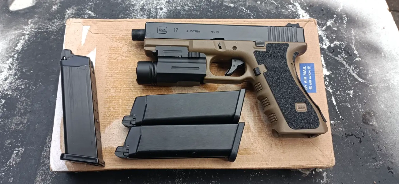 Réplique peaufiner, sous license Glock ; compatible We-Tech, KJWorks, Army Armament, Tokyo Marui.