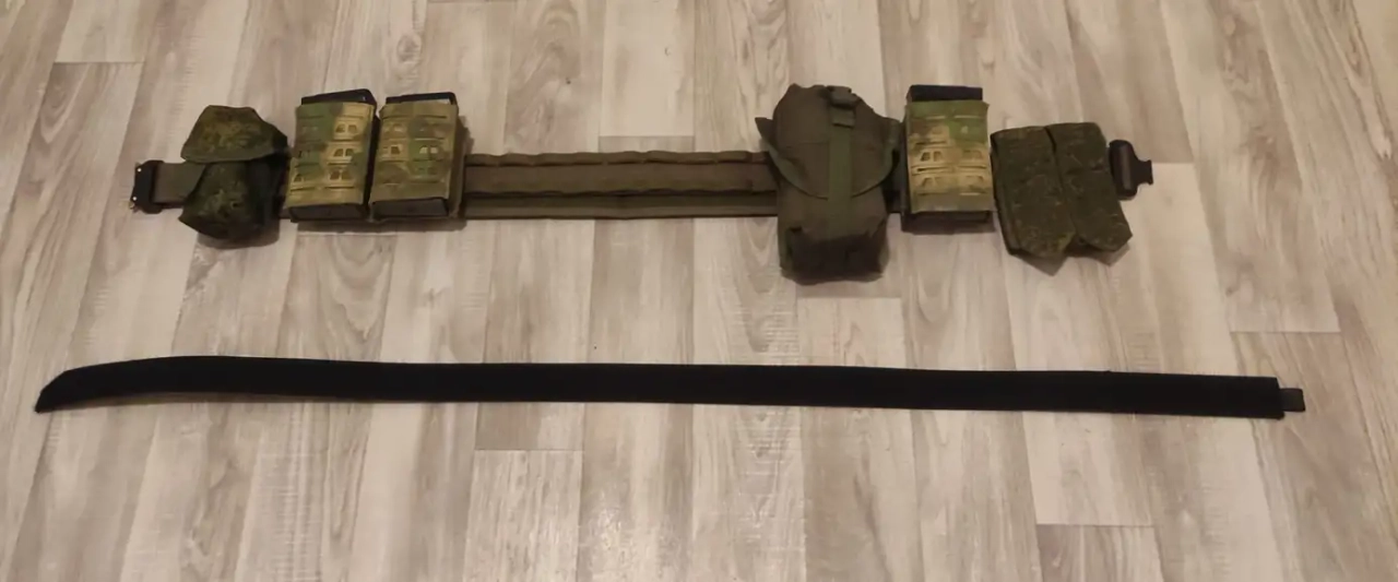 Elle comporte également 3 poches Novritsch DMR en everglade, une double poche PA Russe (RS) en EMR digital flora, une poche gourde OD, une poche grenade en EMR Digital Flora ( Ali Express).