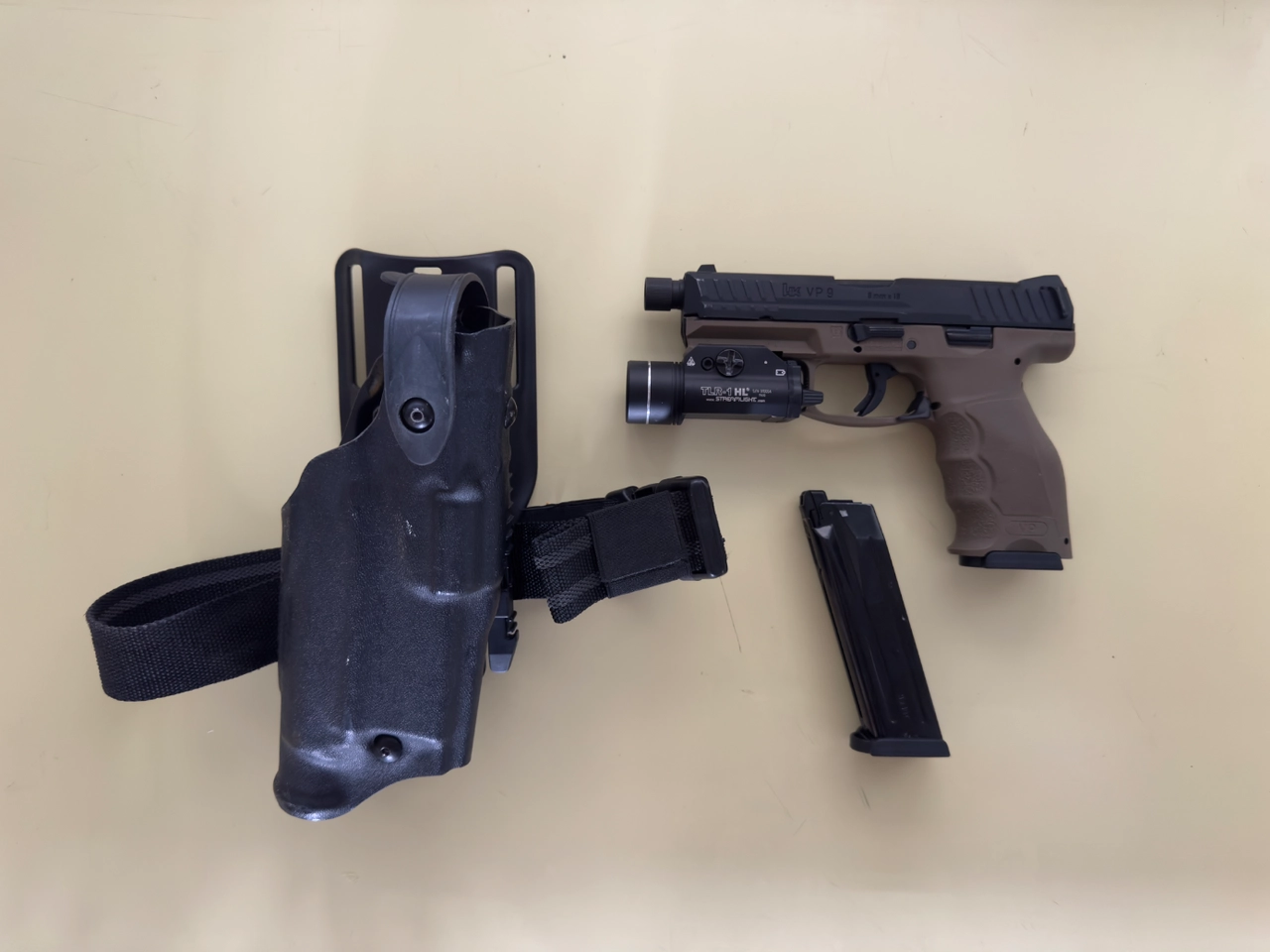 Bonjours mes poulets, je mets en vente mon HK VP9 VFC avec son chargeur supplémentaire, il y a un joint mapple leaf beige et je donne une repro de TLR1, 100 💶