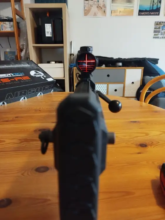 - Lunette Vector Optics 10-40X50 AOE rétro-éclairée (rouge ou vert – 5 niveaux de réglage). Traces légères de rouille sur la monture de fixation. Pile neuve changée le 16/09/2025.