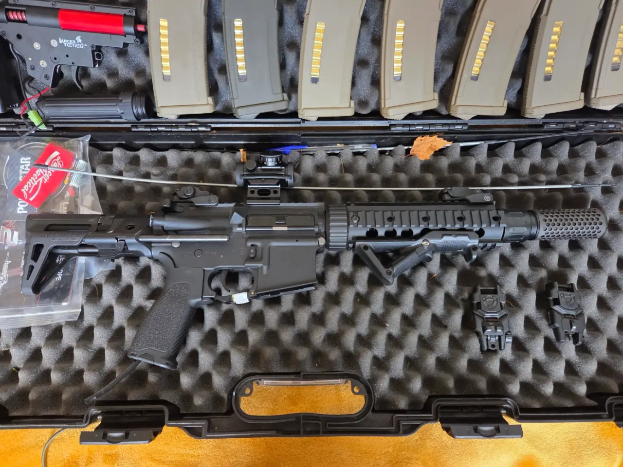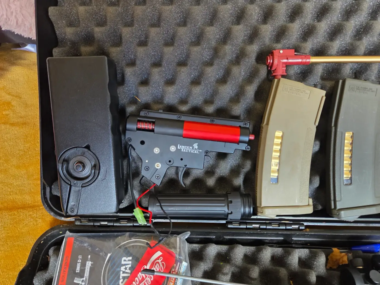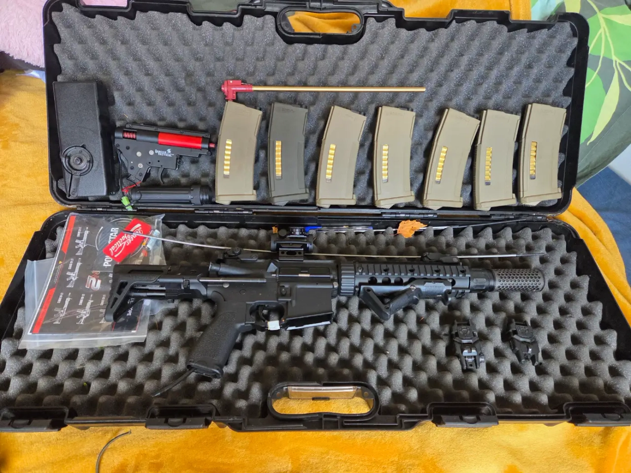 je fournie les pièces d'origines canon, bloc hop up, le joint et la gear box pour la remettre en AEG (jamais servi ni ouverte). Je donne avec un speed loader et une lampe.