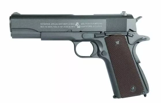 Cette réplique de poing Colt 1911 Anniversary est fabriqué en Full Métal. Sa culasse mobile est gravée des marquages officiels Colt identiques à ceux de l'arme réelle.
