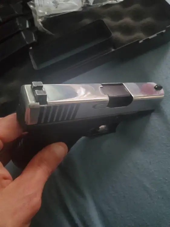 Glock 26 kwc bon état avec culasse chrome, culasse noir en plastique et 3 chargeur supplémentaire y a un nozzle supplémentaire et un talon de chargeur pour glock mais trop grand pour le g26
