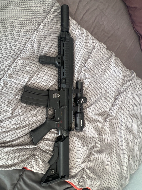 Je vend cette réplique sans la lunette mais avec la poignée et le silencieux qui était fourni avec la réplique , avec le carton .