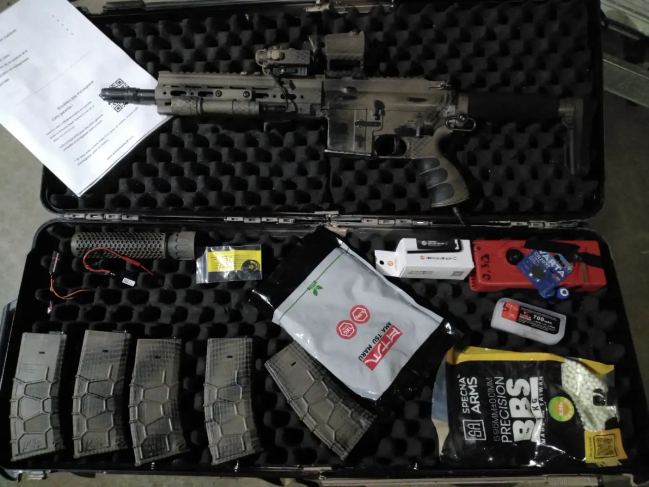 - L'AEG est upgrade avec moteur bruchless option N°1, roulements céramique, gear 13:1, AOE et calage des gear, pneumatique SHS, bloc hop up Maxx, canon de précision, joint hop up mapple leaf super macaron 60°.