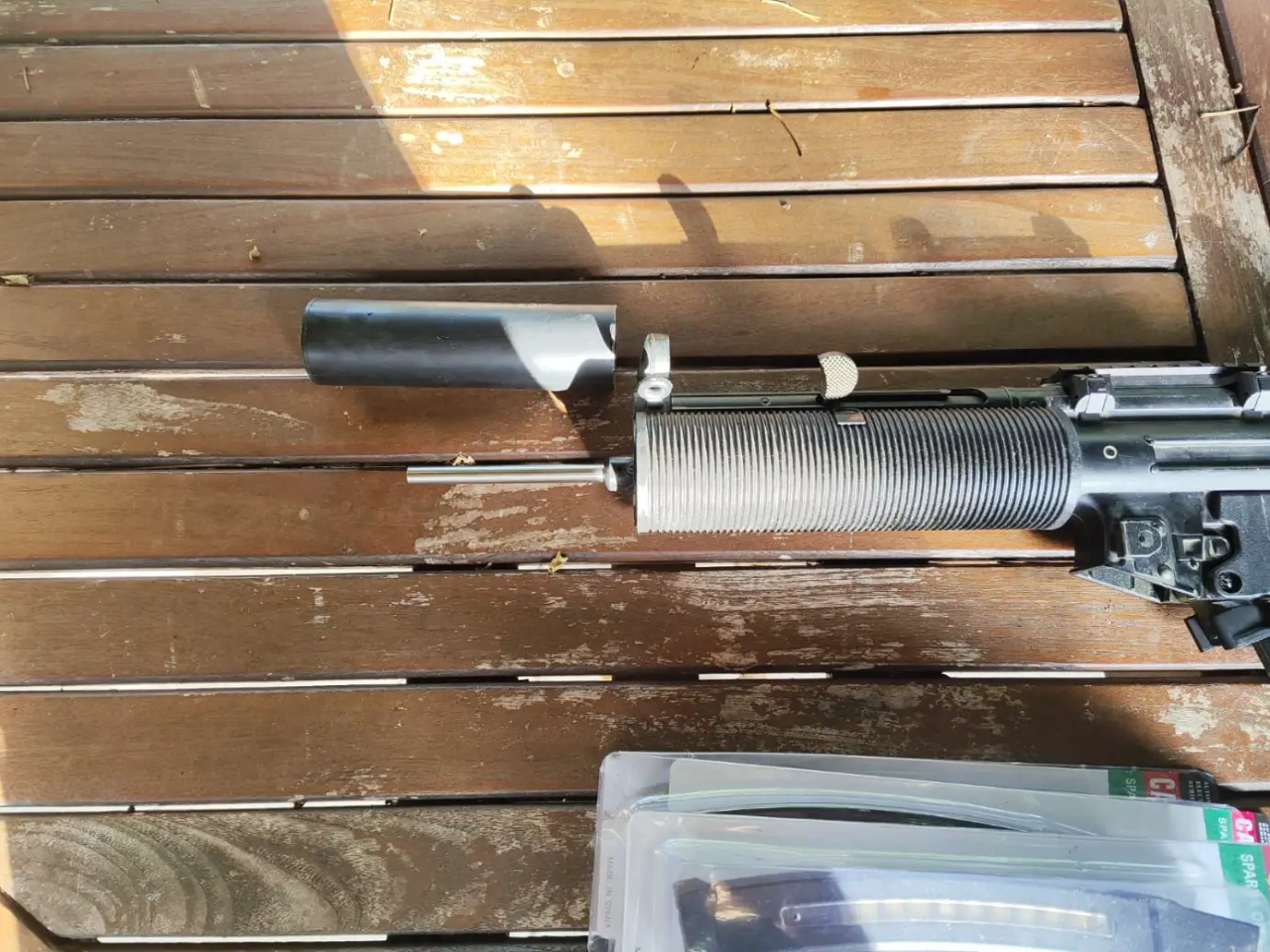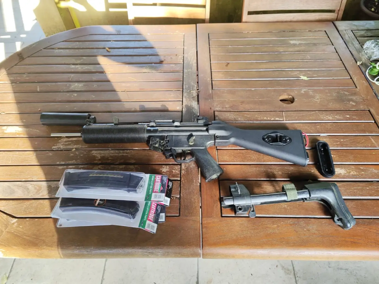 j'ai acheté une MP5SD6 Cyma en rade, bombée en couleur brun sable.