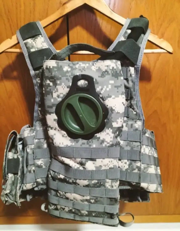 Il dispose de 2 porte-chargeurs doubles et d'un simple, d'une pouch administrative et d'un camelback. Comme neuf.
