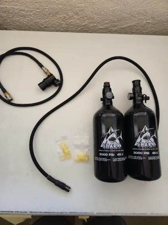 Bonjour je met en vente un kit HPA avec 2 bouteilles sans fuites et fonctionnelles + 2 ligne HPA USA USA et une EU vers USA