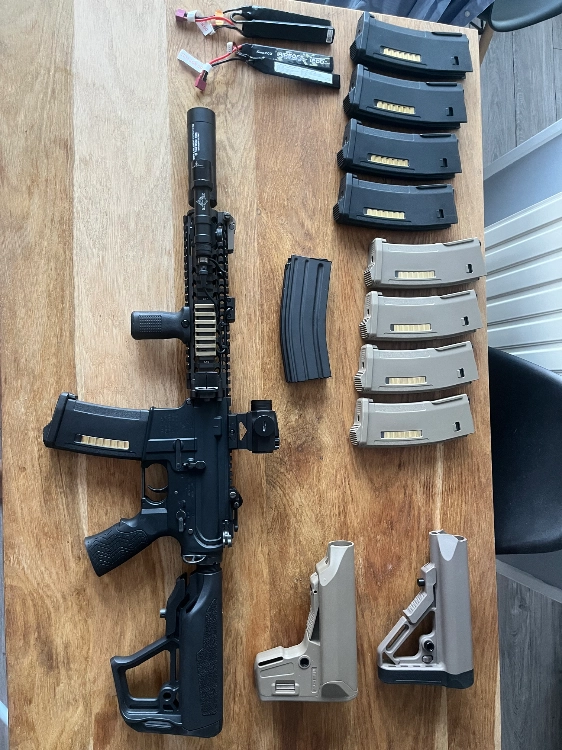 La replique avec le full upgrade de chez RTP avec mosfet LEVIATHAN (1 100)€ + 9 chargeurs PTS (252€) + poignée arrière DD avec moteur high torque slim (69.90€) et crosse EMG Zeta ICS (49.90) ≈ 1471€