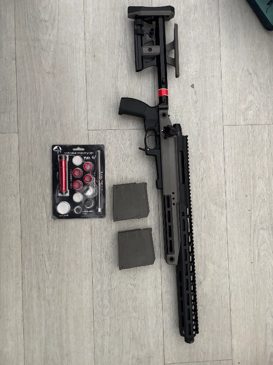 Bonjour, je vend mon tac41A wolf grey suite a l'achat d'une autre replique, parfait état de fonctionnement excellente portée et précision, avec piston masse variable, airbrake, ressort 100nm, avec la garde main, 2 chargeurs . Prix 700€