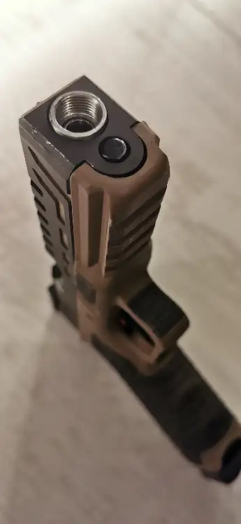 Ce pistolet possede un filetage interne 12x1 CCW Au bout du canon, permettant de fixer un adaptateur.