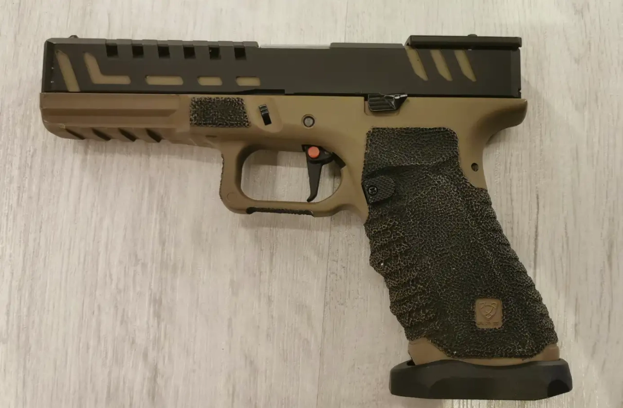 Principale Caractéristiques : Culasse fabriqué CNC / stipping sur la surface des grip / magwell / compatible avec les holster pour série G / double alimentation (270 FPS Green Gaz / 330 FPS CO2)