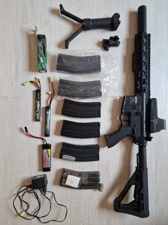 Je vends une M4, avec 5 chargeurs, un bipied, viseur infra rouge et 4 batteries avec le chargeur.