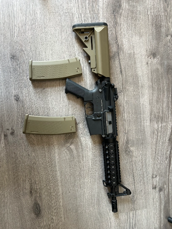 Peu de parties à son actif, vendue avec 2 high cap S-Mag de specna et un attache sangle un point monté sur le tube de crosse.