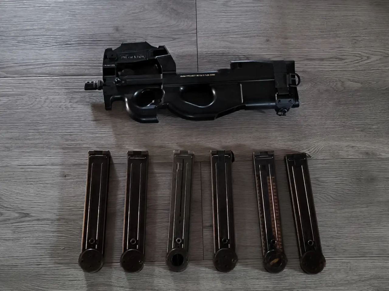 Je vends mon P90 Tokyo Marui NON FONCTIONNEL (problème de gearbox) avec un attache sangle et 6 chargeurs midcap.