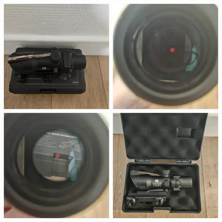 Je vend cette lunette ACOG 4x32 avec marquage Trijicon et fibre optique fonctionnel.