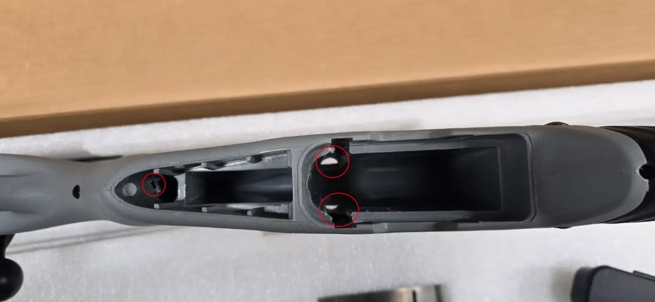 La crosse a était modifiée pour le passage d'un flexible est d'un kit CO2 , de ce fait l'usinage se vois de l'extérieur sur la crosse (2 trous voir photo)