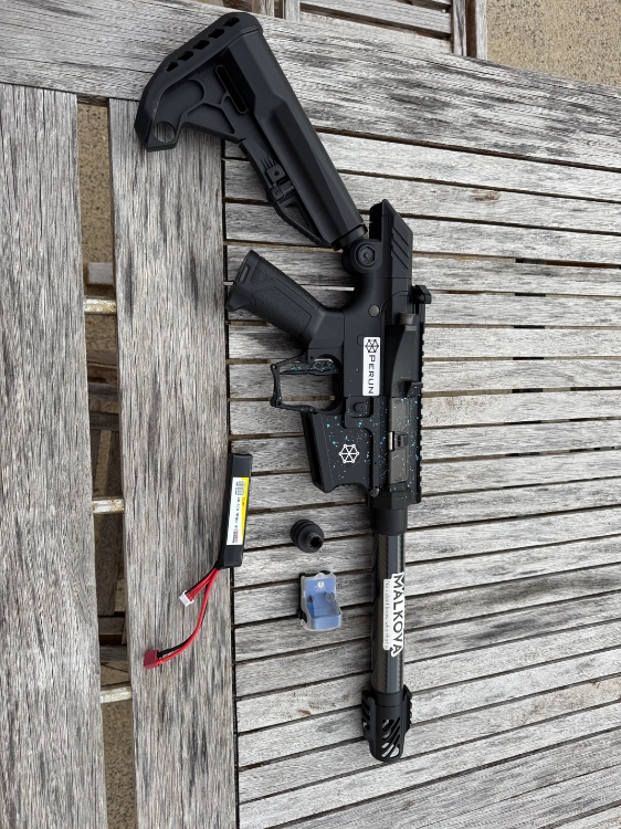 Elle a un canon lamba 6.05 ,joint hop up g&g, la détente raccourci , set de gear shs renforcé et l’étu perun permettant de configurer différents mode de tir et protection .