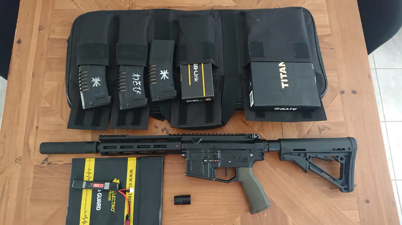 La réplique, les boîtes du titan, 3 chargeurs amoeba, une batterie 11.1V/1100mAh et une housse de transport