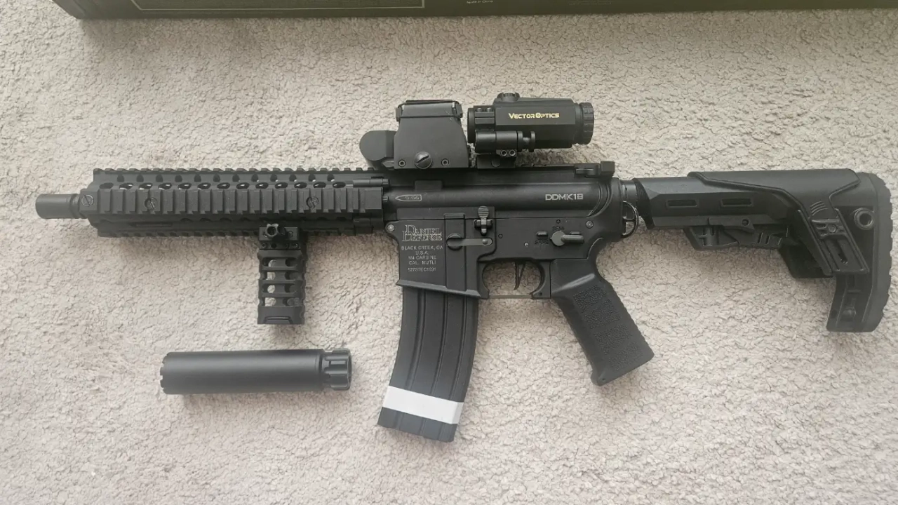 La réplique est vendu avec son emballage d'origine, le cache flamme d'origine, deux chargeurs type STANAG, un viseur holographique sans marquage fonctionel avec potentiellement un magnifier VECTOROPTICS a négocier ,une poignée verticale 5ku, une crosse avec appuie joue réglable et un modérateur de son. Elle est évidemment ready to play, elle tourne comme une horloge. Aucun frais a prévoir car tout est neuf dessus. Je la vend car je passe sur du GBBR