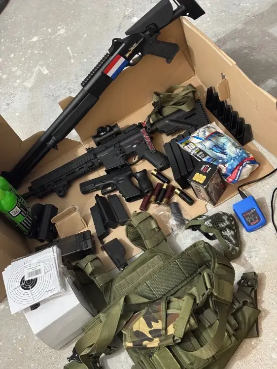 Je vends mon kit d'airsoft complet d'un coup. Tout ce qui est illustré (répliques, accessoires et sac) est inclus. Bien entretenu, utilisé seulement trois fois, il est dans un état proche du neuf et n'a jamais posé de problème.