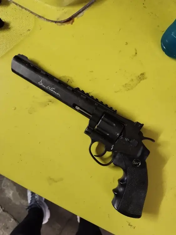 Il a été upgrade pour baisser sa puissance et passer au partie d'airsoft.