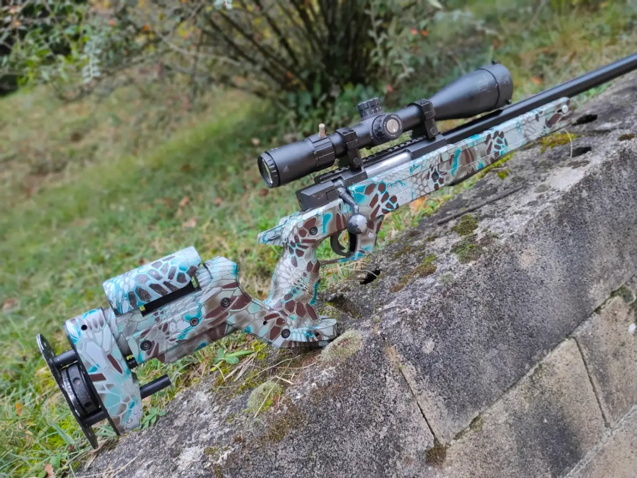 Déco unique Kryptek bleuté (hydrodipping + vernis mat).