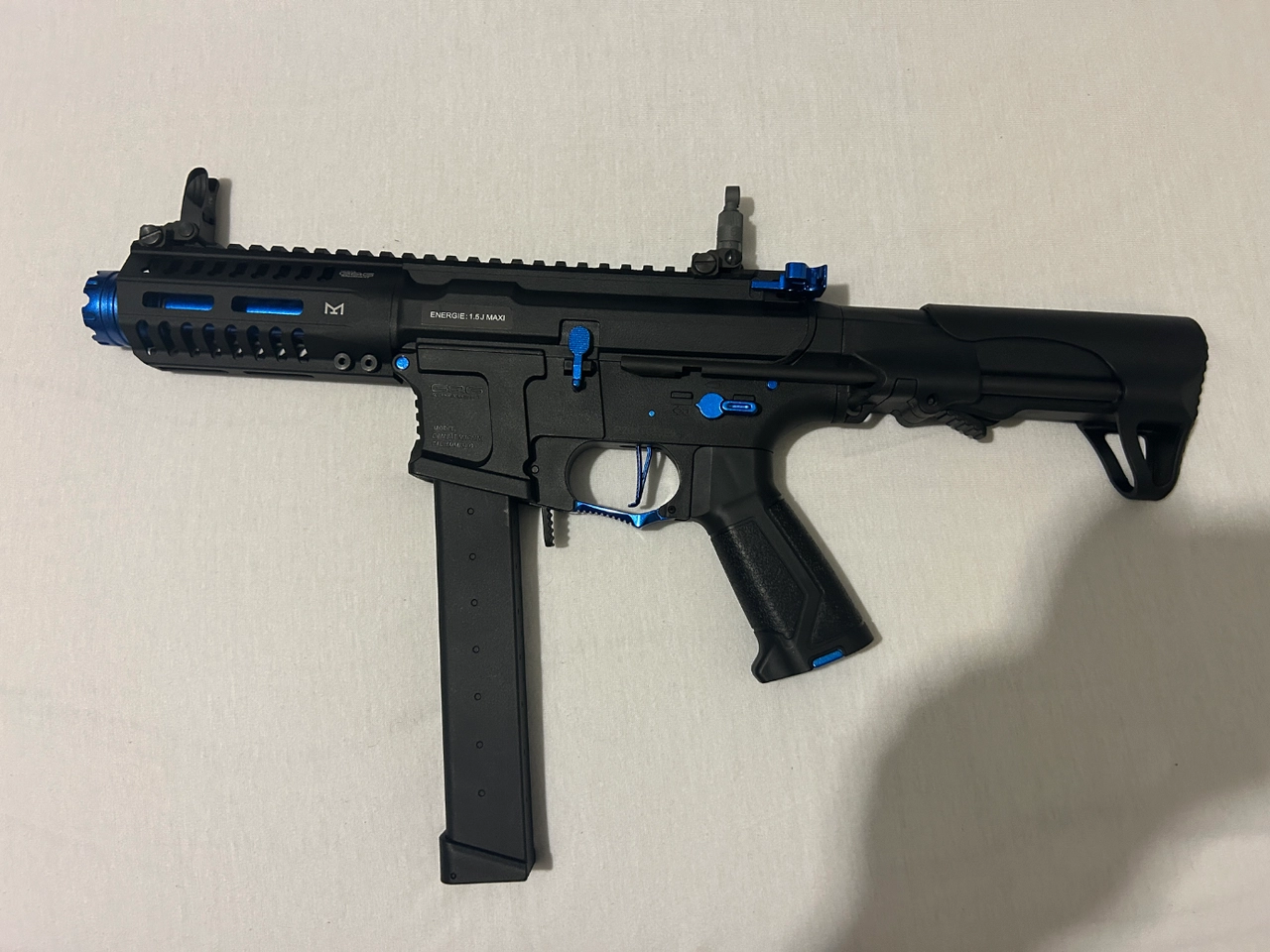 Je vends mon ARP9 couleur Sky Blue de chez G&G car je n’ai plus le temps de l’utiliser. La réplique a toujours était entouré de tissu pour éviter les rayures. Je n’ai plus le carton malheureusement.