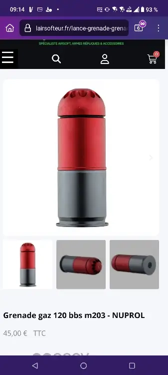 Vend lance grenade avec 5 grenade métal gaz