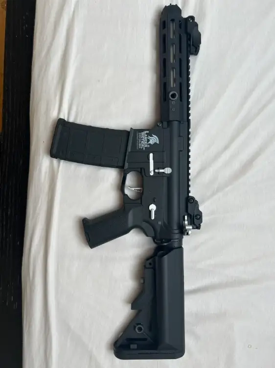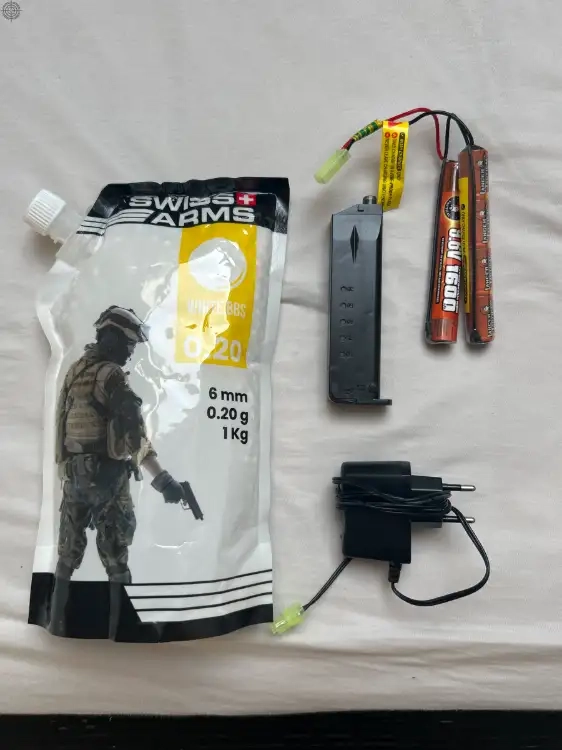Bonjour, je vends ma réplique car je n’en ai pas l’usage, je l’ai acheté il y a exactement 1 mois, elle a vu le terrain une seule fois, elle a été conservé au sec et la batterie n’a pas été déchargée complètement. Je la vends avec un sac de 5000 billes 6mm 0.2gr swiss arms la batterie (1600mAh nimh) le chargeur de la batterie ainsi qu’un bb loader.