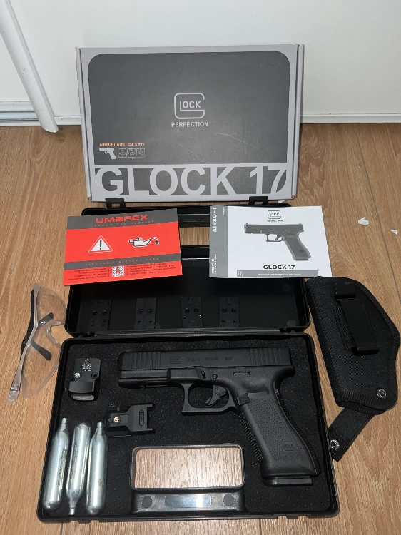 Bonjour je met en vente mon Glock 17 Gen 5 avec tout ses accessoires et sa boîte d’origine , l’arme est quasi neuve , je vend le tout, donc arme + reddot+ laser + quelques bonbonnes de co2+ holster interne externe pour droitier et gaucher , je vend des billes avec , il tire parfaitement bien , je le vend car j’ai obtenue ma licence d’arme donc je vais m’orienter vers de vrai armes.PRIX NÉGOCIABLE DANS LA MESURE DU RAISONABLE!l’arme a toujours était bien huilée bien graissée , appelez moi au 0652560773, je pourrais me déplacer dans le secteur , (je donne avec une lunette de protection + malette tactique)le Glock est vendu avec toutes ses plates pour re ajuster un autre reddot