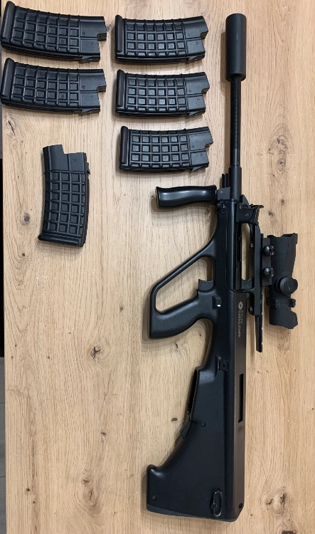 Je me sépare de mon Steyr Aug A2 qui est en très bon état, il est équipé d’un canon de précision, d’un silencieux, d’un block Hopup neuf et d’une lunette de visée.