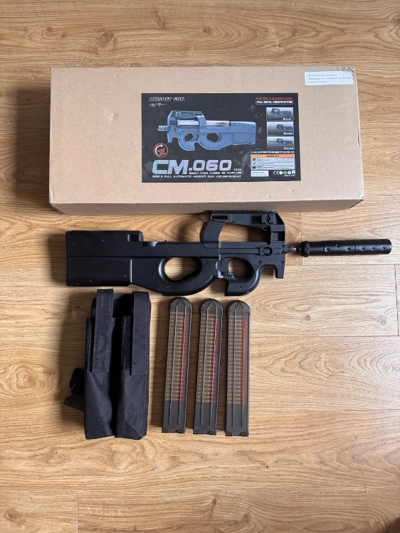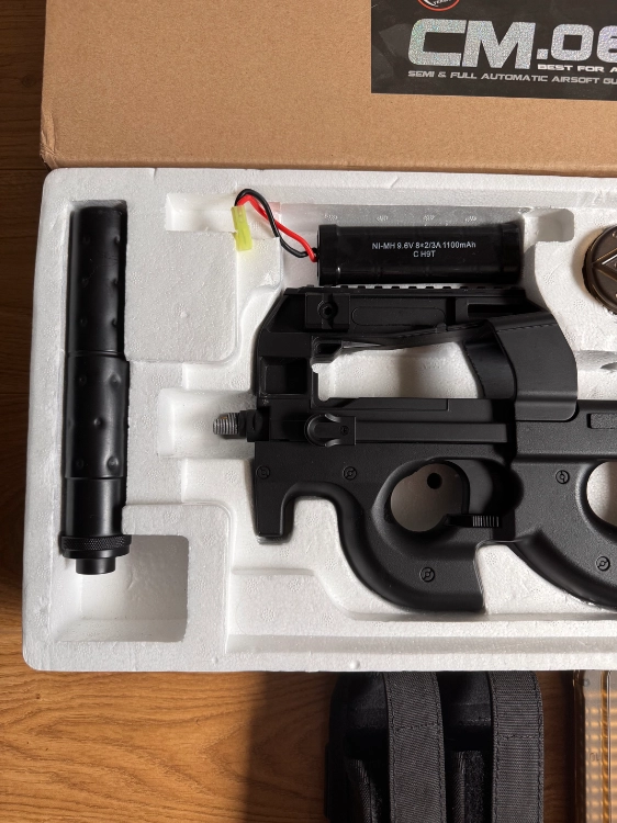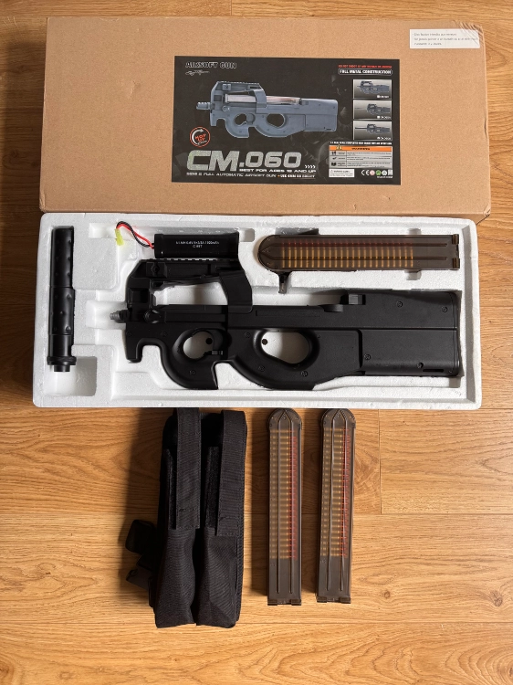 Boîte complète avec réplique, chargeur d’origine, batterie, chargeur de batterie, tige de débourrage, silencieux.