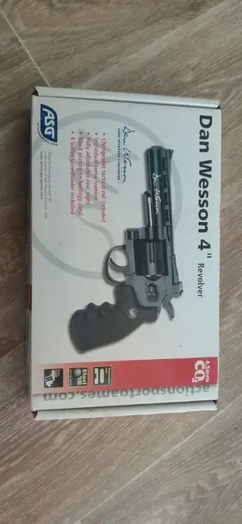 Revolver à plombs. (Bb 4.5) Avec ses cartouches et dans son carton, très peu servi et précis. Tout métal et crosse abs.