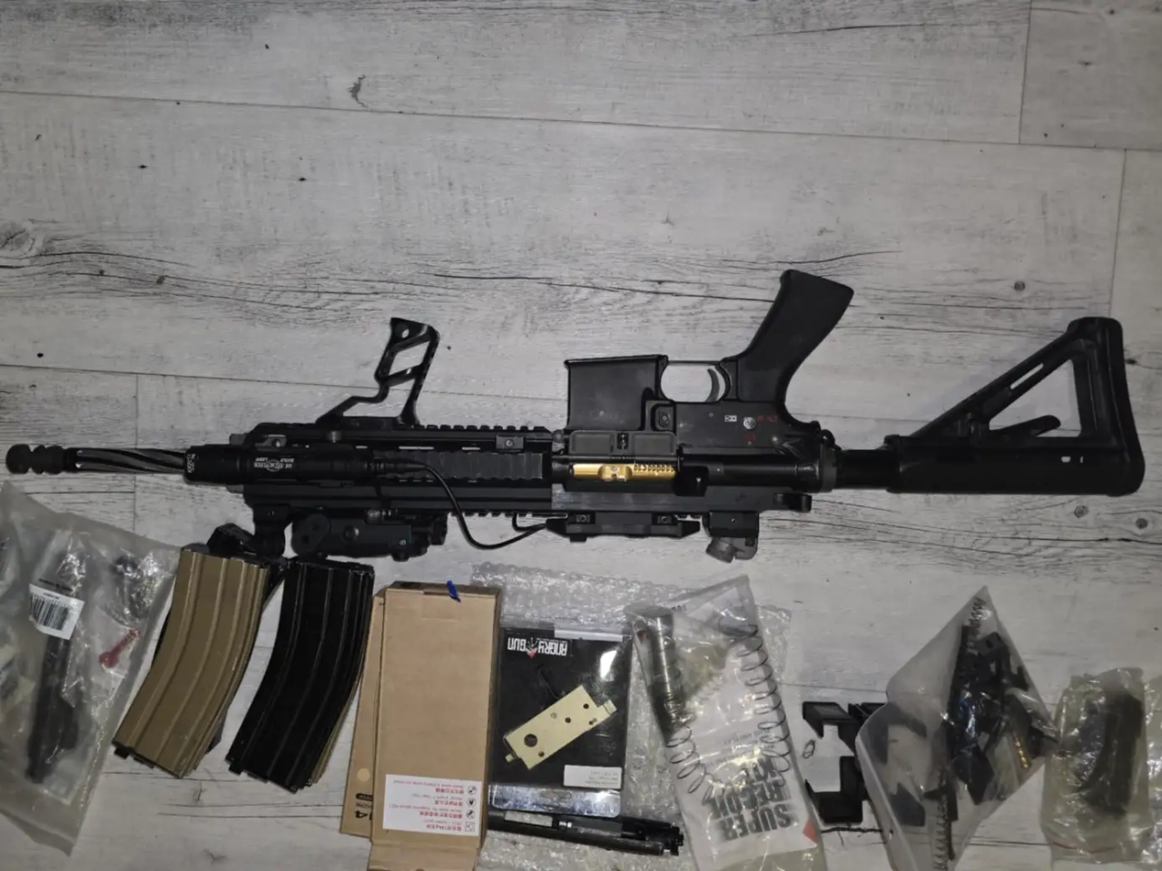 Interne bloc hop up complet ra-tech bloc détente ra-tech et la cullasse doré ra-tech et le nozzle alu ratech avec npas fournis avec 4 chargeur et 2 chargeur neuf jamais ouvert plusse plein de pièce fourni avec plusse un trigger angry gun competition j'amais deballer.