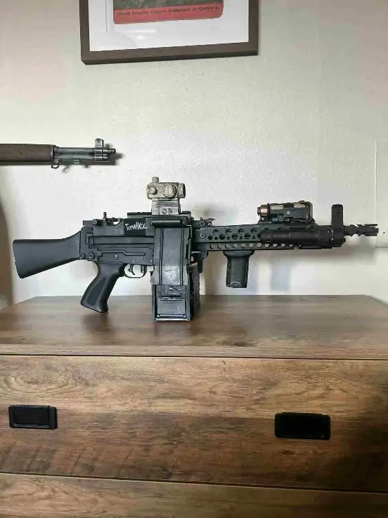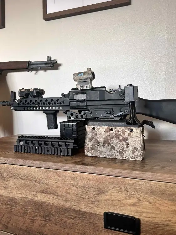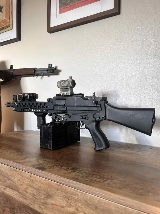 Stoner 63 AEG, réplique raccourci custom GMR, crosse couper par l'ancien proprio, j'ai fais faire raccourcir le canon.