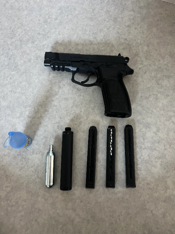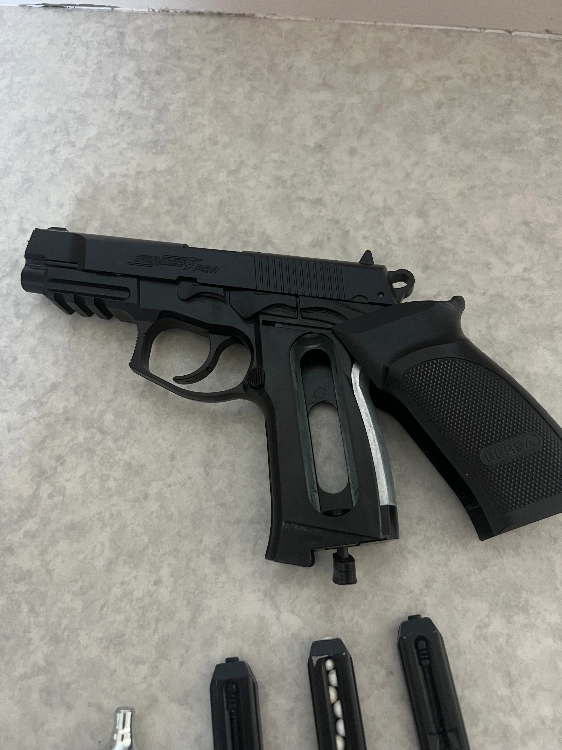 Bonjour je met en vente ma réplique d’arme de poing a co2 pas servi depuis quelques années le silencieux ne fonctionne pas c’est juste esthétique, sinon la réplique n’est plus toute neuve mais fonctionnait très bien à l’époque !