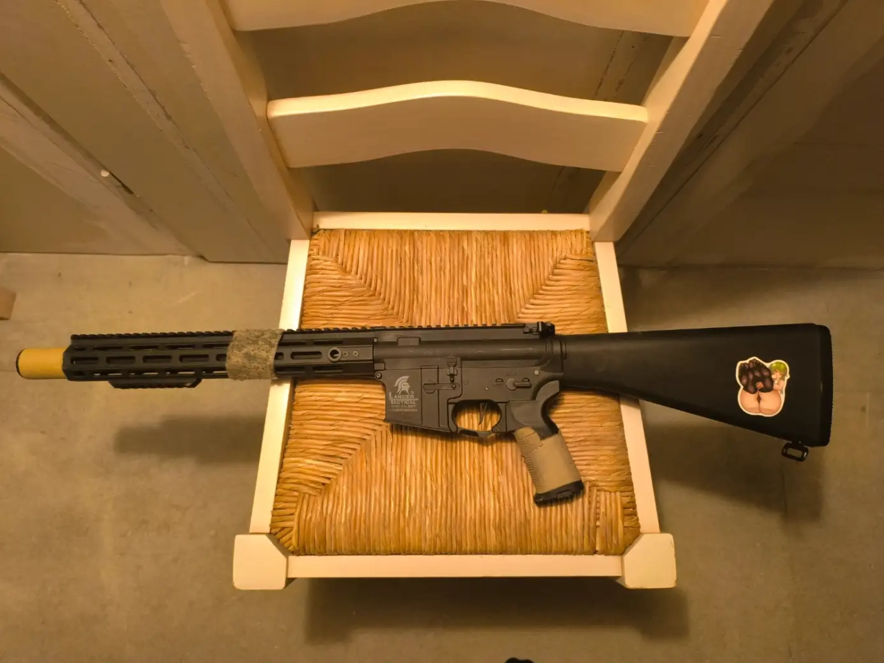 la crosse a été changé par une crosse type m16 , je peux fournir le tube et la crosse d'origine. la réplique est vendue avec 1 bipied, une lunette et 2 chargeur cour midcap