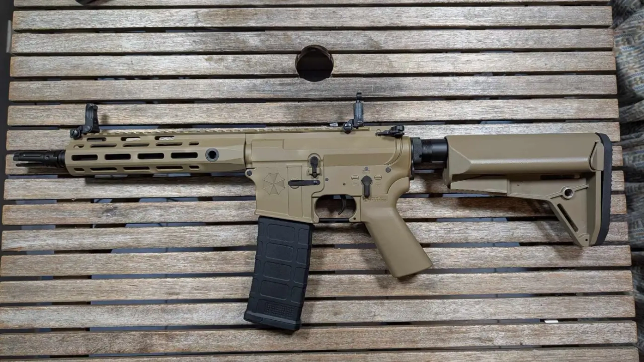 Je vend cette M4 fabriquée par Cyma Platinum en collaboration avec EMG et disposant de la licence Umbrella Corporation de la saga Resident Evil.